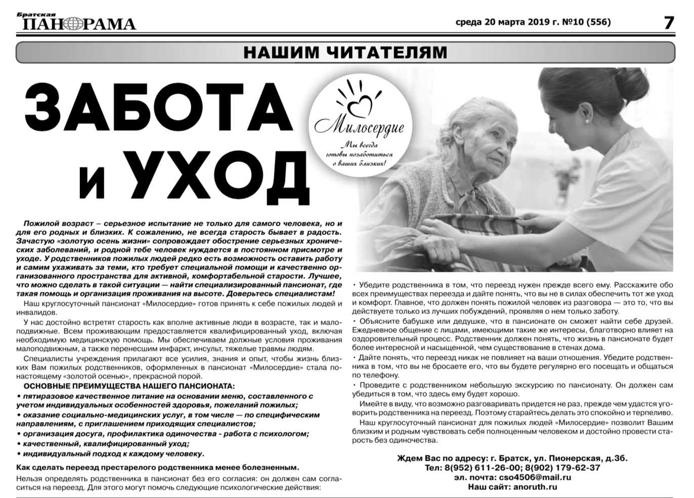 Статья в газете Братская Панорама от 20.03.2019, №10 (556)